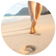 Your feet contain nerves that connect and correspond to different parts of the body, according to reflexology. The foot has 42 muscles, 26 bones and 33 joints and deserves to be pampered. While we know how healthy walking is for our bodies, walking barefoot in the sand is also great for your feet. The sand massages your feet as you walk and provides a natural way for your feet to be massaged. This can improve blood circulation, stimulate the muscles in the feet, strengthen the feet and ankles, relive stress and help you to relax. It also connects you to nature which can relieve all kinds of stress and imbalance in your life. And there is nothing quite like the feeling of walking in the sand barefoot! But also note that walking barefoot in the sand can exaggerate or cause problems in the shins and tendons of the heel and feet so it is best to keep the barefoot walking in the dry sand areas to a shorter walk.